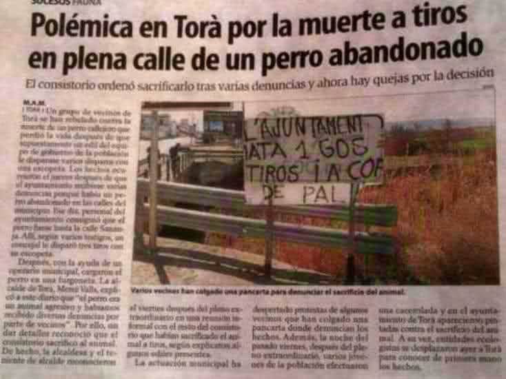 Los hechos denunciados ocurrieron el pasado 29 de marzo, cuando el teniente de alcalde, acompañado por la alcaldesa, disparó tres veces con una escopeta de caza a un perro que vagaba por las calles del municipio de Torà. Según explicó el consistorio en su momento, la intención del acusado era acabar con las molestias que causaba a los vecinos la presencia del animal.