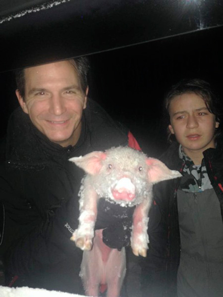 Una familia salva a un cerdito de morir congelado en la tormenta de nieve de EEUU
