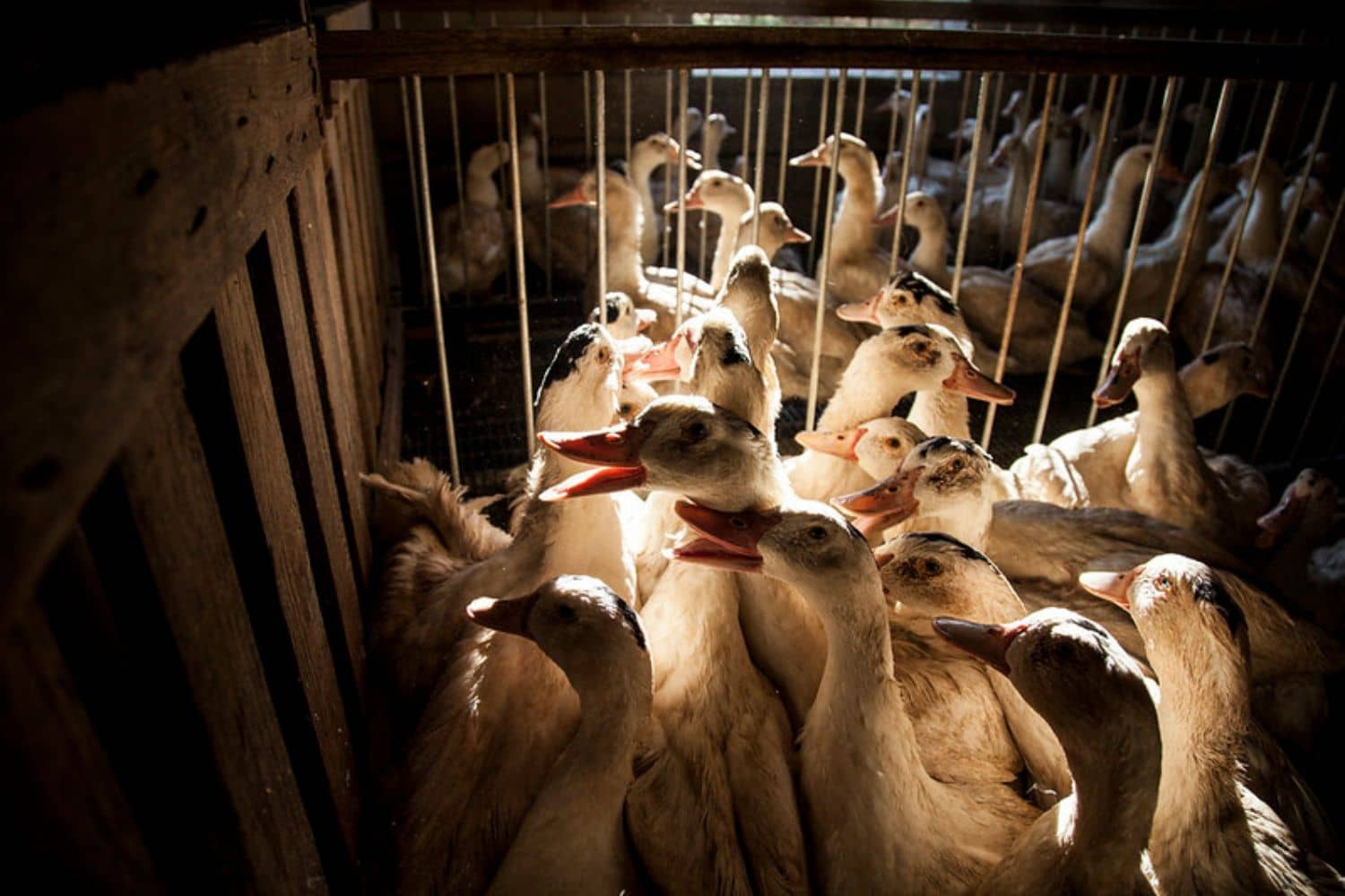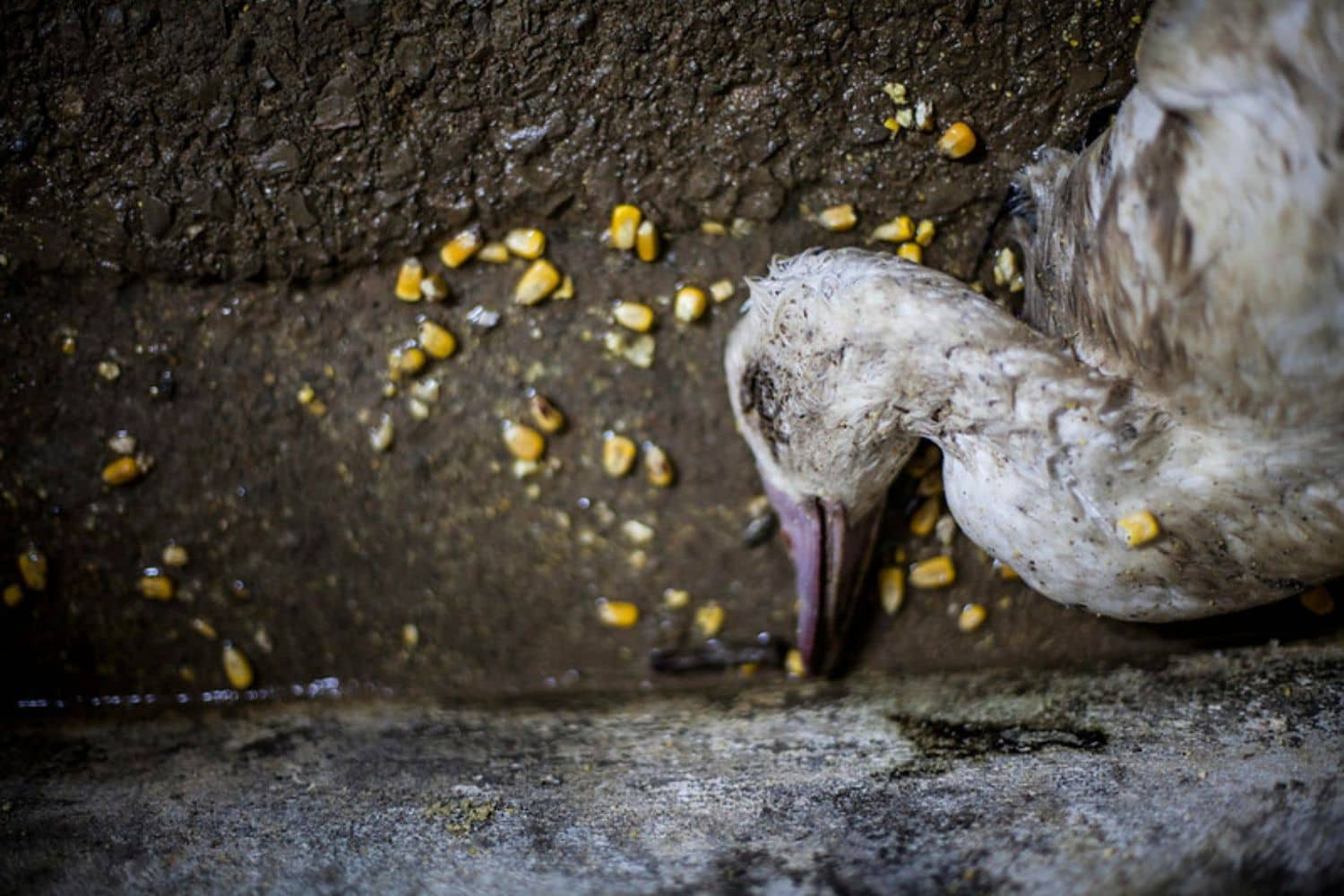 3. Los animales que enferman en las granjas de foie gras no suelen recibir atención para ahorrar en gastos veterinarios. Los patos mueren tras sufrir heridas e infecciones durante días.