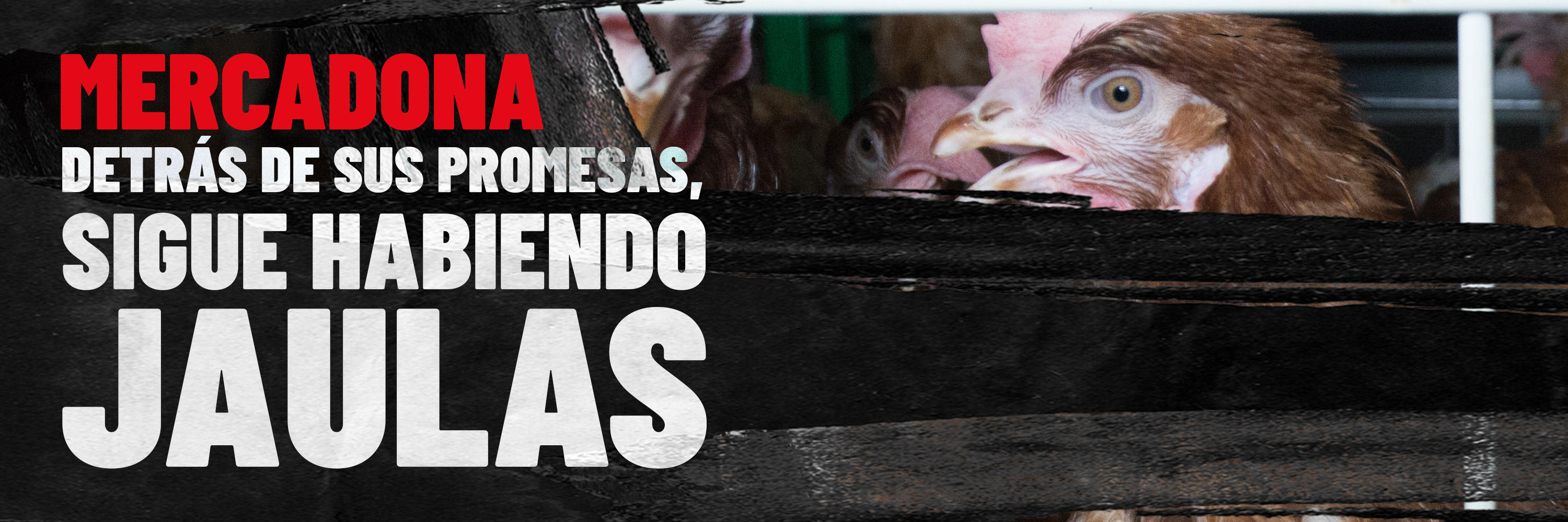Mercadona se comprometió en 2018 a dejar de abastecerse de huevos de gallinas enjauladas y renovó este compromiso en años posteriores, estableciendo que el 100% de sus huevos serían libres de jaulas antes del fin de 2025. Sin embargo, a día de hoy sigue vendiendo huevos procedentes de gallinas enjauladas y solo el 65% de sus huevos son libres de jaula. Por tanto, a pocas semanas de acabar el año, la compañía aún no ha cumplido su promesa. Por este motivo, Igualdad Animal ha lanzado una nueva campaña nacional para informar a los consumidores y exigir avances reales para que eliminen las jaulas.