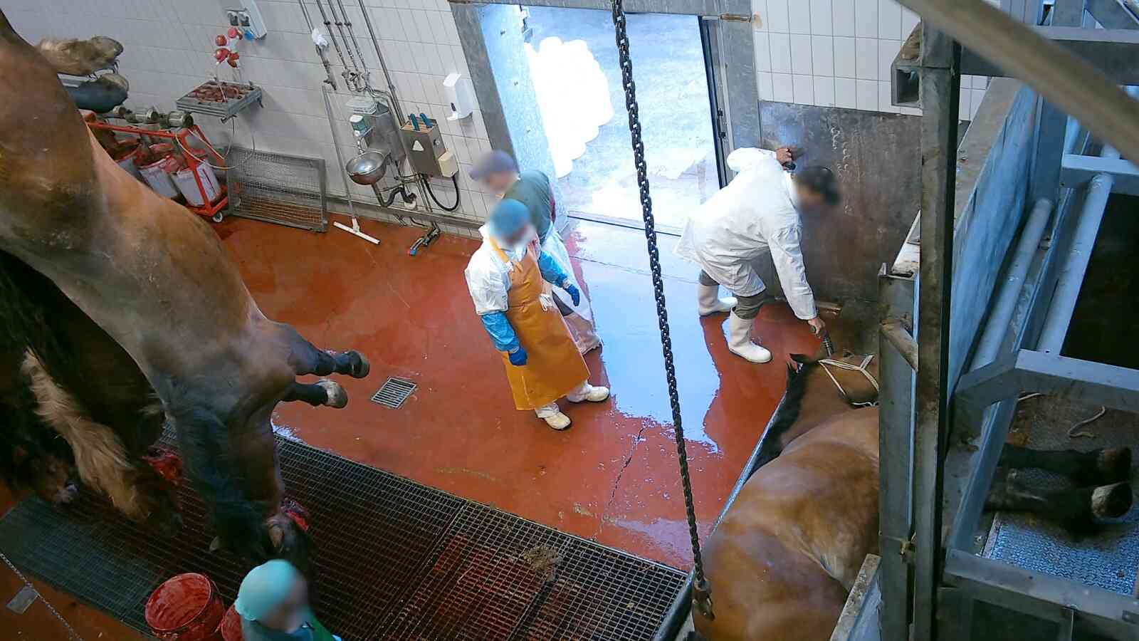 En nuestra última investigación —realizada junto al fotoperiodista Aitor Garmendia entre noviembre de 2023 y mayo de 2024 en un matadero de Asturias— los investigadores registraron caballos golpeados para avanzar en los pasillos, obligados a formar filas donde presencian el sacrificio de sus compañeros, así como fallos reiterados en el aturdimiento, dejando a muchos animales plenamente conscientes mientras son degollados.