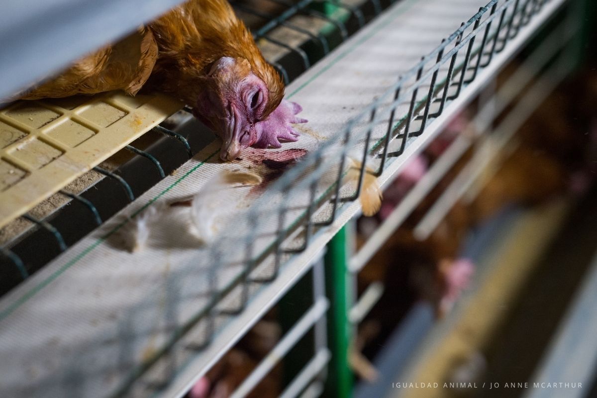 Según datos oficiales, más de 31 millones de gallinas continúan viviendo en jaulas en España. Estas aves no pueden caminar libremente, estirar sus alas, escarbar o anidar, comportamientos básicos de su especie.